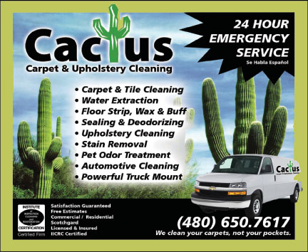 The majority of the spots and stains found on a carpet are removed by the general carpet cleaning process. But every once in a while a spot or stain requires special attention. Cactus Carpet Cleaning has an arsenal of specialty spot removal products, and if we can't get it out... it won't come out!